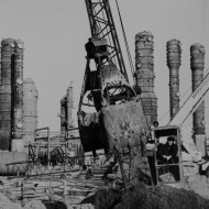 The site selected for the future plant had to be drained. Nearly 80 km of drainage pipes were laid, 1,000 wells were drilled, and approximately 270,000 cubic metres of peat and silt were removed. Over 2m cubic metres of sand and gravel was brought. All this was done to lower the ground water level and raise the land level by some 1.5m on average. About 8,000 reinforcing piles were driven into the ground, some of them 24 metres deep.